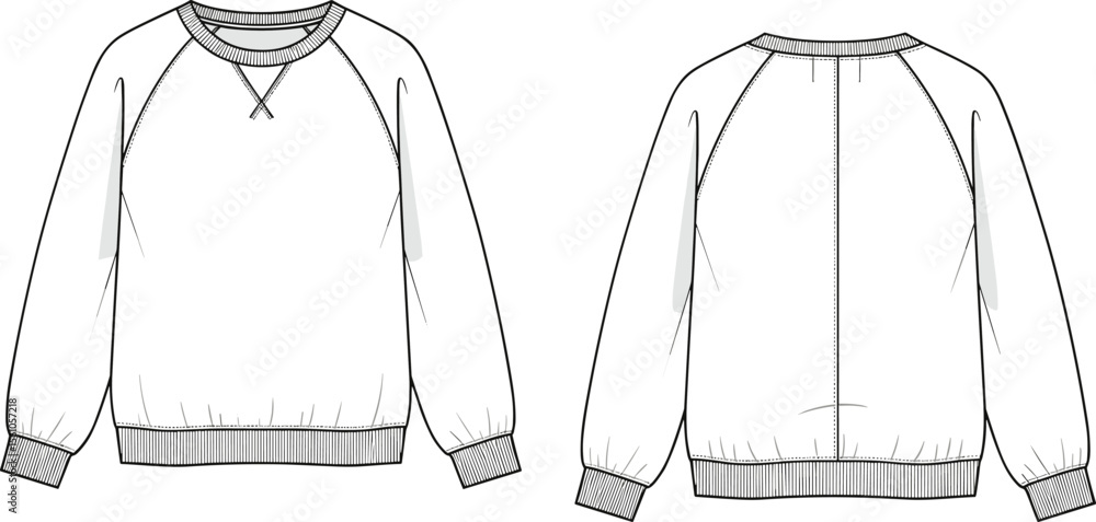 Foto Crew neck sweatshirt front and back flat sketch, raglan sleeve pullover vector i