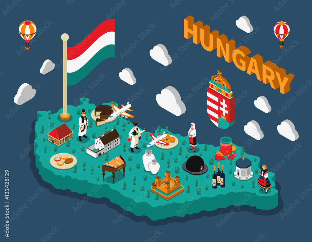 Tapet Hungary Isometric Touristic Map