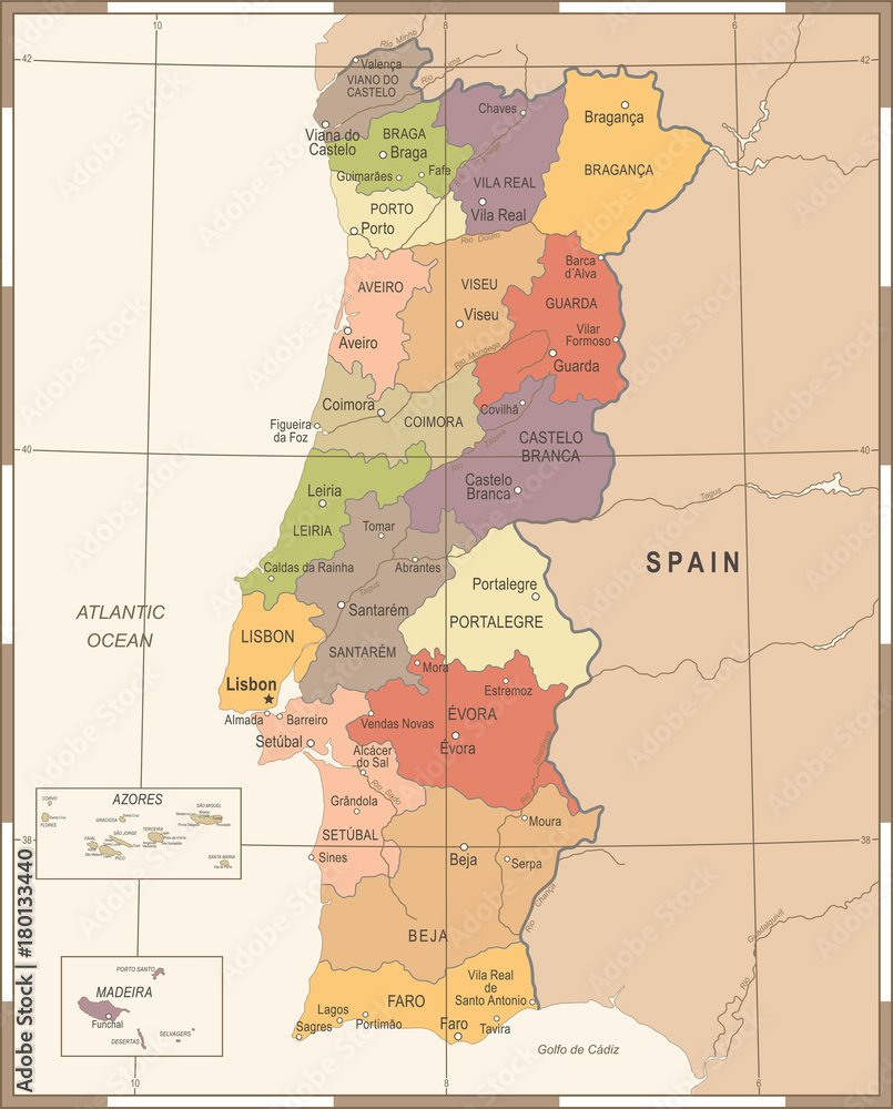 Tapet Portugal Map - Vintage Detailed Vector Illustration