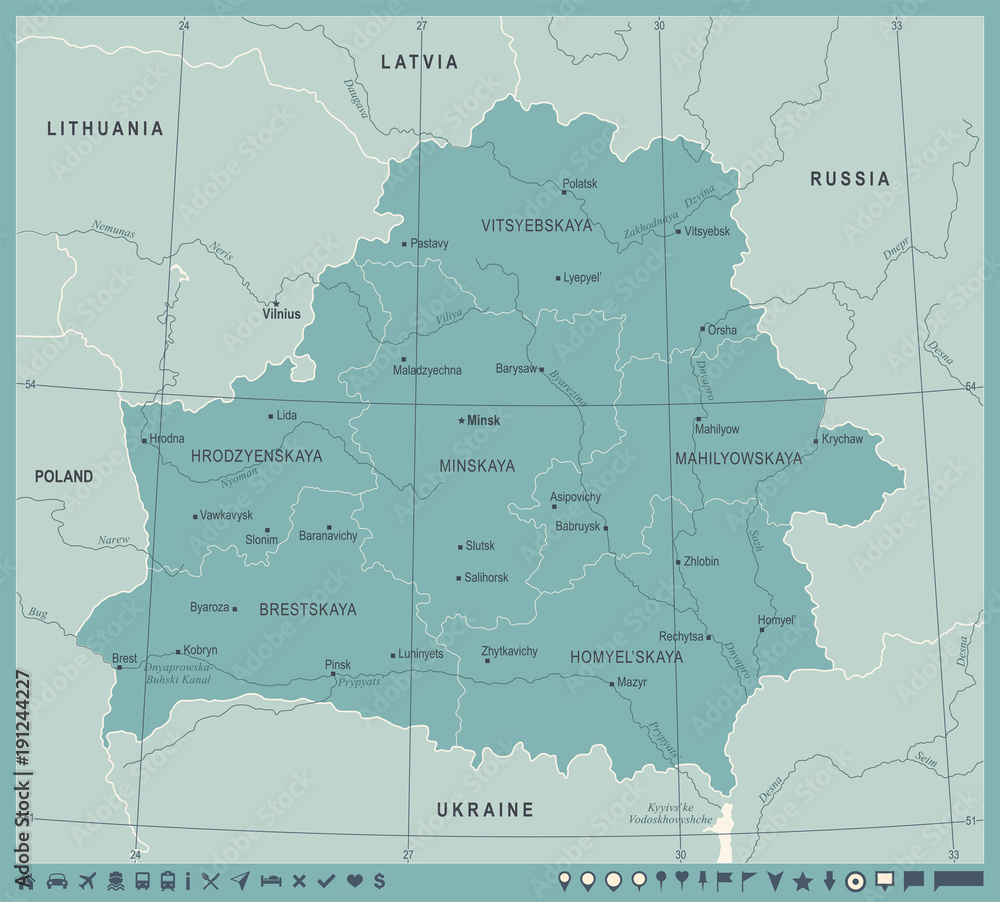 Tapet Belarus Map - Vintage Detailed Vector Illustration