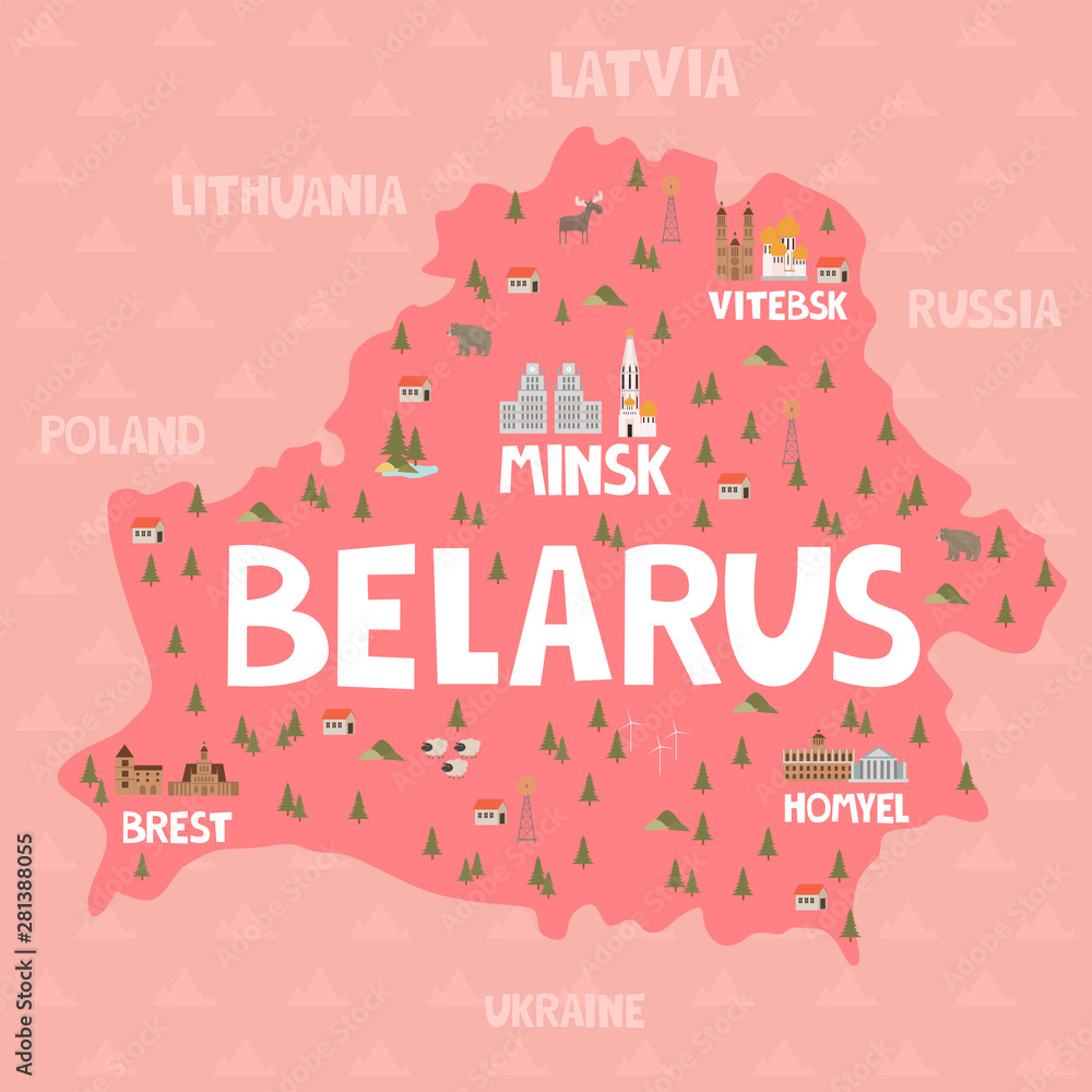 Tapet Illustration map of Belarus with city, landmarks and nature