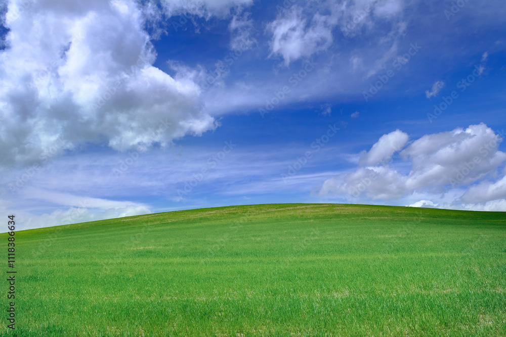 Klistremerke Green Farm Field Crops Blue Sky and Clouds