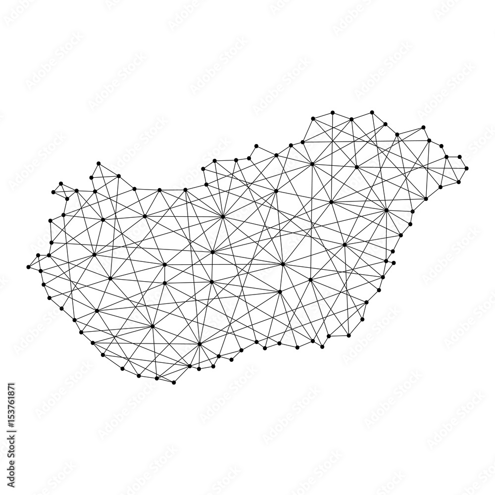 Klistremerke Map of Hungary from polygonal black lines and dots of vector illustration