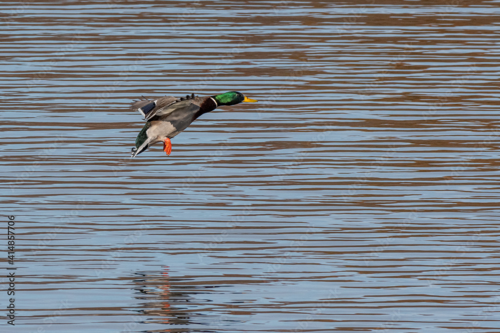 Bilde på lerret Mallard drake flying over the Huron river