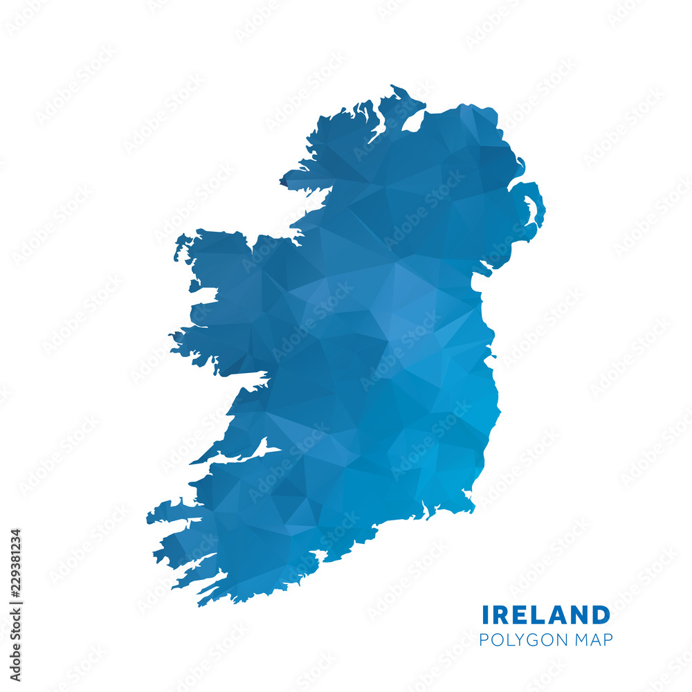 Bilde på lerret Map of Ireland. Blue geometric polygon map.