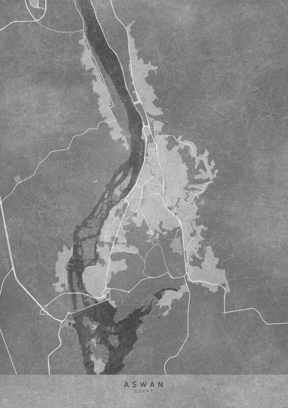 Bilde på lerret Map of Aswan (Egypt) in gray vintage style