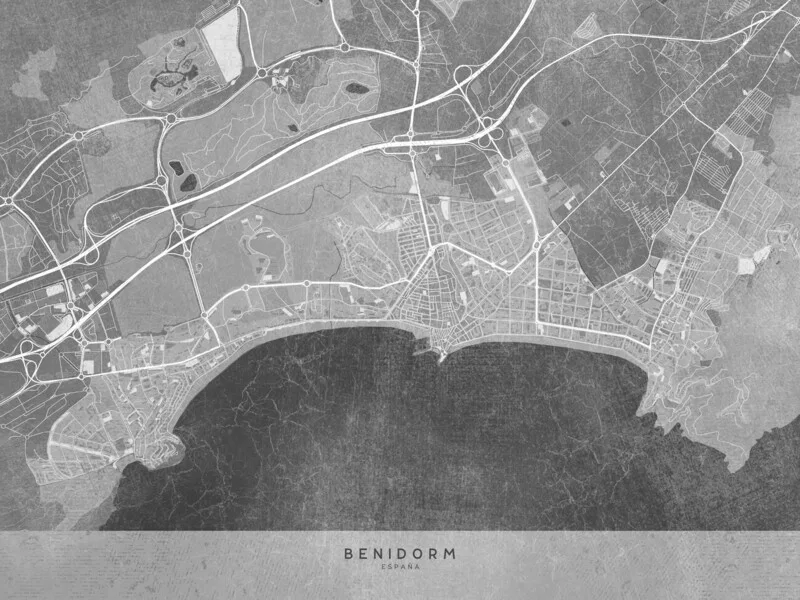 Bilde på lerret Map of Benidorm (Spain) in gray vintage style
