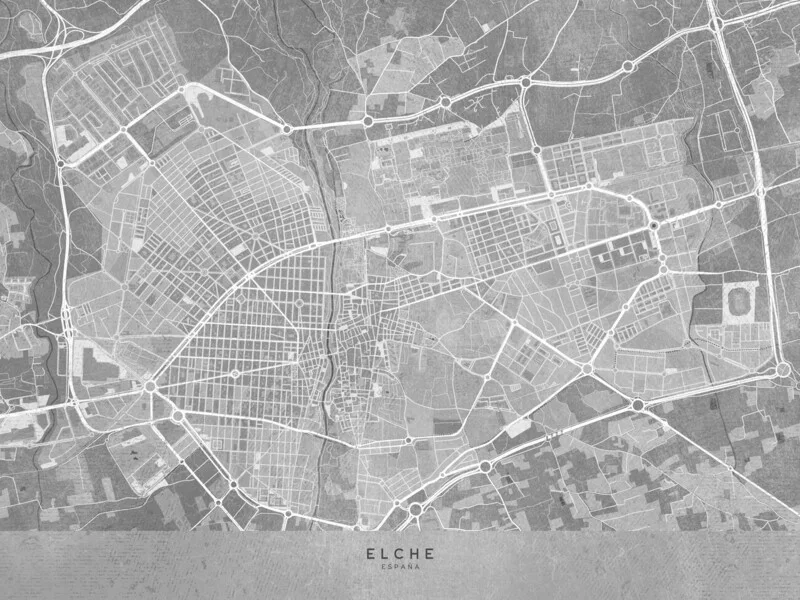Bilde på lerret Map of Elche (Spain) in gray vintage style