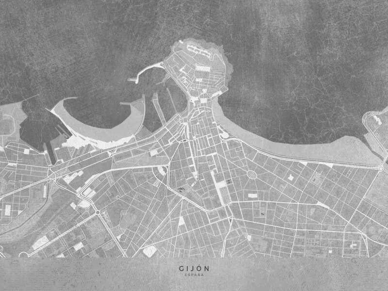 Bilde på lerret Map of Gijón downtown (Spain) in gray vintage style