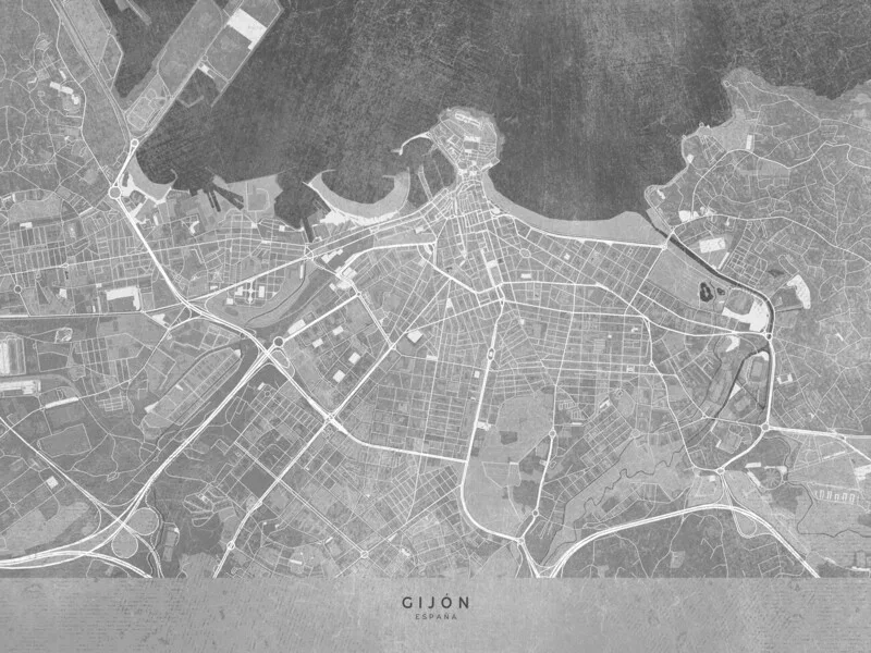 Plakat Map of Gijón (Spain) in gray vintage style