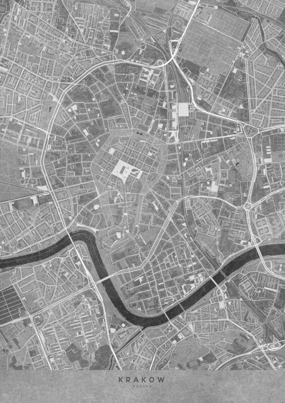 Klistremerke Map of Krakow downtown (Poland) in gray vintage style