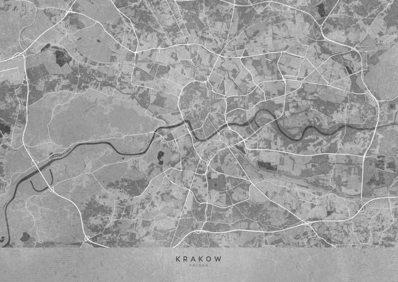 Bilde på lerret Map of Krakow Poland in gray vintage style