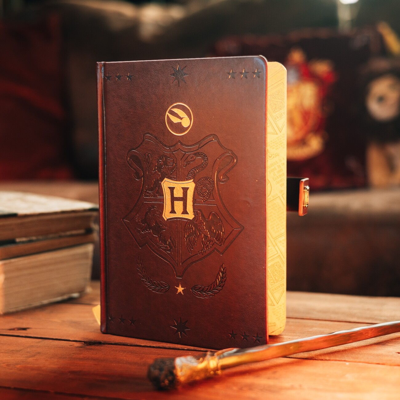 En magisk notatbok for alle Harry Potter-fans! De solide omslag i imitert skinn, Rumpeldunk-motivet og 240 linjerte sider gjør den til den perfekte følgesvennen på skolen, på jobb og på reise.