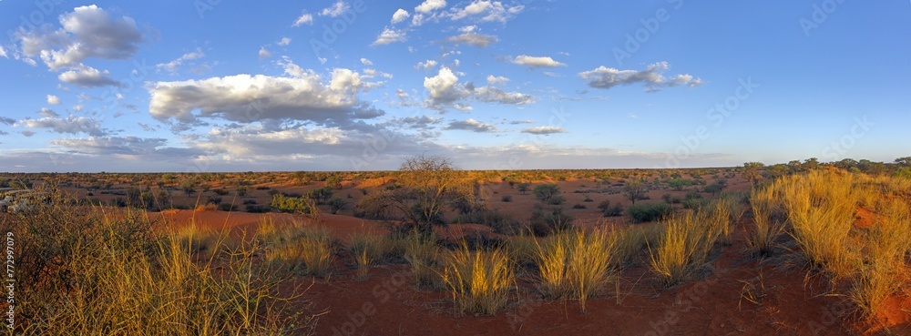 Bilde på lerret Panoramic picture over the Namibian Kalahari in the evening at sunset with blue