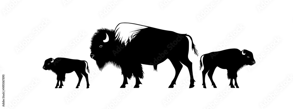 Foto Isolated on a white background, a modern illustration of a Bison family silhouet