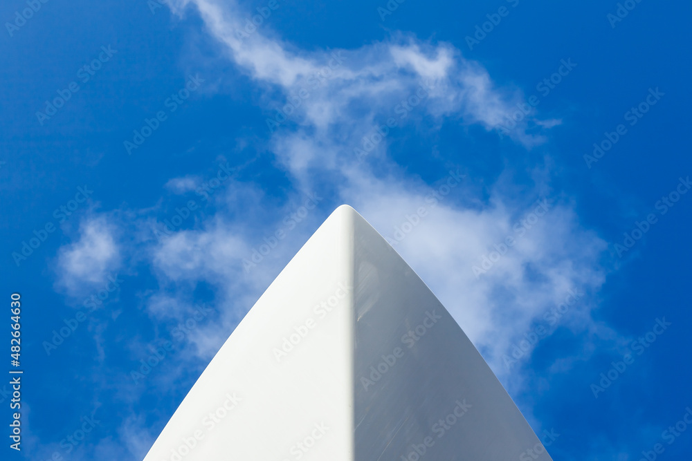 Foto The bow of a white yacht, against a blue sky with white clouds